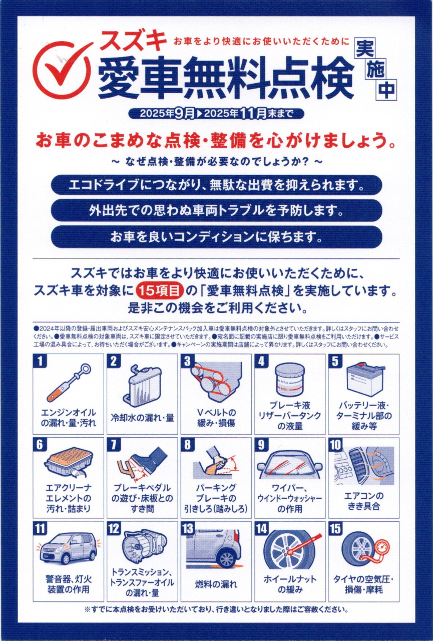 スズキ車にお乗りの方はお気軽にお寄り下さいね